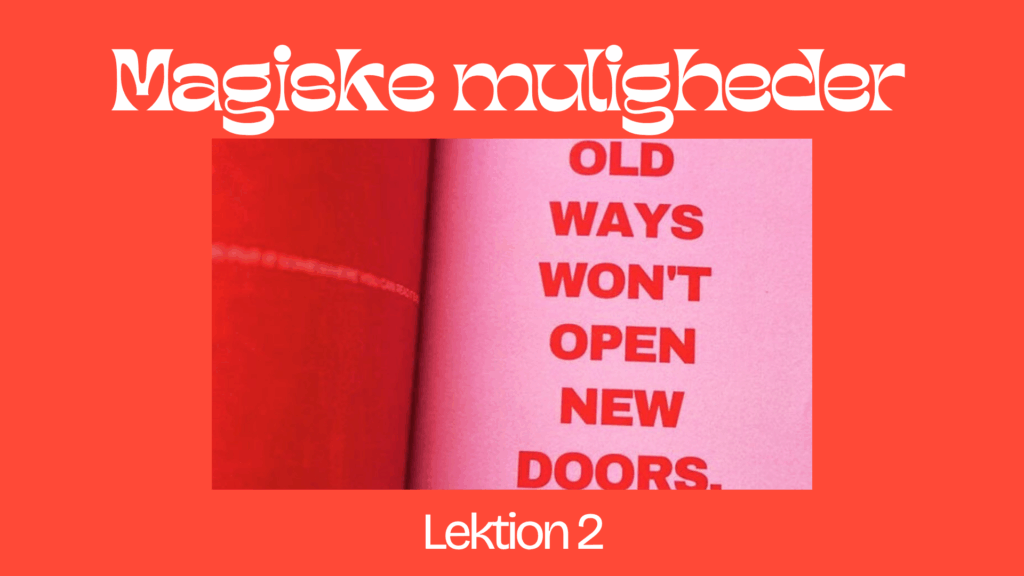 2. Magiske muligheder er din anden lektion. Her finder du ud af, hvor mange muligheder der er omkring dig, hvordan du laver kvantespring og hvordan du går fra “spænde-trøje” følelsen til totalt frihed, når det kommer til din markedsføring.