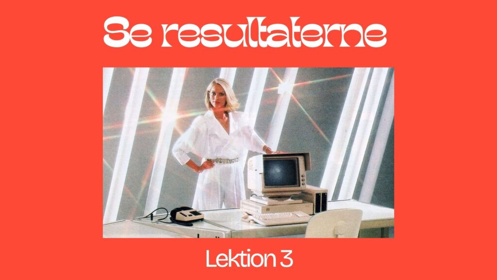 3. Se resultaterne. I denne sidste lektion går vi fra tanke til handling. Det er her du får overblik over, hvordan du finder det format der passer til din personlighed og hvordan du kan høste alle de frugter du har plantet (resultater, kunder og salg).